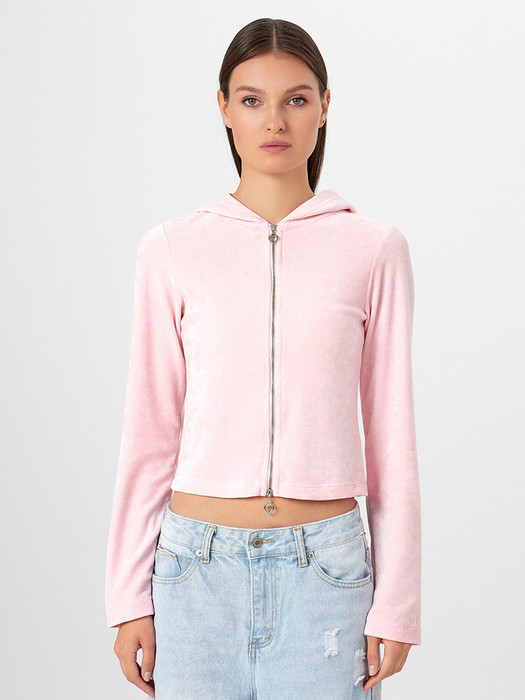 Толстовка полуприлегающего силуэта, укороченная. Горловина круглой формы с капюшоном. Капюшон со средним швом, на подкладке из кулирки. Шов втачивания капюшона и притачивания молнии закрыт тесьмой хб. Центральная застежка на тесьму-молнию. Рукава втачные длинные.