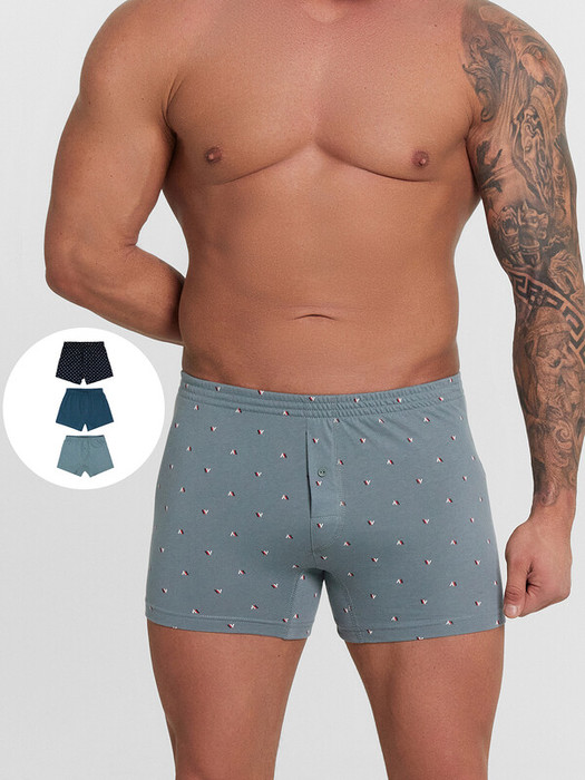 Воплощение свободы и комфорта – трусы-шорты для мужчин. Мягкие швы, гульфик с декоративной пуговицей, комфортная широкая резинка в поясе и расслабленный силуэт – всё для вашего удобства!