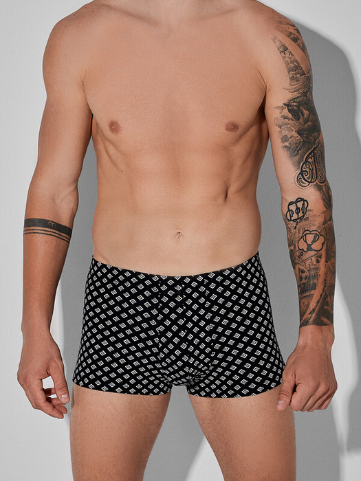 Черные трусы-боксеры мужские с узором — это стильное и комфортное белье для повседневной носки. Модель выполнена из мягкого дышащего трикотажа, который нежно облегает тело, не сковывая движений. Эластичный пояс мягко фиксирует трусы на талии, не оставляя следов, а плоские швы исключают натирание даже при активном образе жизни.