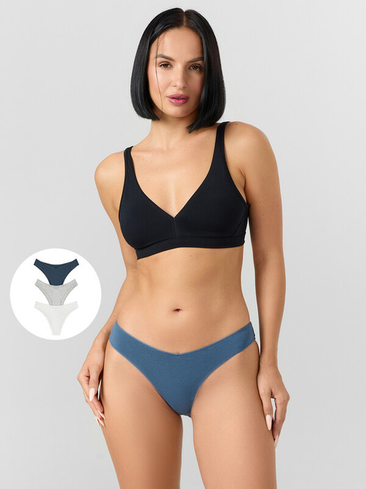 Набор женских трусиков бразилиана — это три пары белья, созданные для комфорта и элегантности в повседневной жизни. Модели выполнены из эластичного хлопка, который мягко облегает тело, обеспечивая свободу движений. Высокая линия талии деликатно поддерживает фигуру, а плотная, но нежная резинка не давит и не оставляет следов.