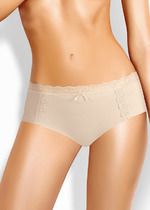 Трусы женские, средняя линия талии, силуэт - бразилиана, выполнены из трикотажного кулирного полотна. Передняя и задняя детали цельные. Подкладка ластовицы из основного полотна, отлетная по верхнему срезу.