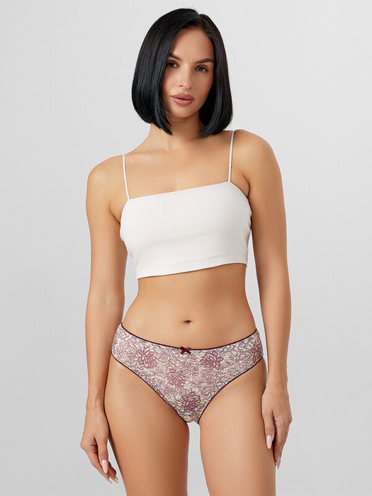 Бордовые кружевные трусики — это элегантность и чувственность в каждой детали. Модель выполнена из невесомой полупрозрачной сетки, которая нежно облегает фигуру, создавая соблазнительный и утонченный образ. Классическая линия талии подчеркивает изгибы, сохраняя комфорт.