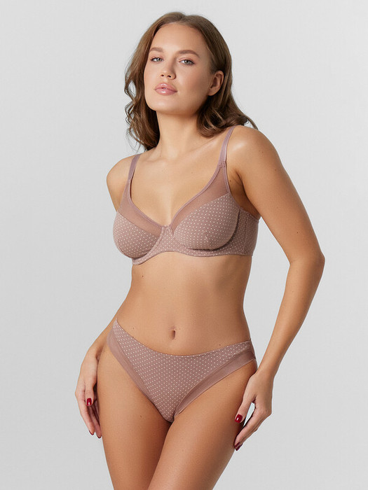 Трусы женские со средней посадкой силуэта «слип». Передняя центральная деталь из микрофибры, боковые передние детали из эластичной сетки, со сгибом по ножкам.  Подкладка ластовицы из кулирного полотна отлетная по переднему краю.