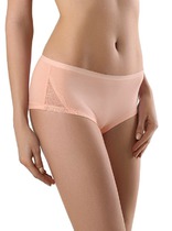 Трусы женские, силуэт слип, из трикотажного кулирного полотна, со средней посадкой, с протяжками по бочкам.  Передняя и задняя детали цельные. Подкладка ластовицы из кулирной глади отлетная по переднему срезу. На бочках отверстия.