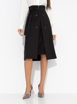 Юбка прямая, длина миди. Верхний срез обработан швом вподгибку с эластичной тесьмой внутри ( 40мм 40RV внутр.). На передней и задней детали проложена строчка по среднему шву. На задней детали в среднем шве обработан разрез. Нижний срез обработан швом вподгибку. Усилитель разреза- Лента репсовая шир.7мм, SFLR-2 .