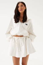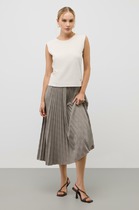 Юбка А-силуэта длиной миди, двухслойная. Верхний слой из сетки, нижняя юбка  из ткани (крой по косой). По верхнему срезу притачана эластичная тесьма (внутр. 20мм 20RV). Нижний срез  верхней юбки с "сырым срезом". Нижний срез нижней юбки обработан швом вподгибку.