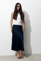 Юбка А-силуэта, длиной миди. По переду заложена складка. По бокам обработаны карманы-хулиганы, подкладка из подкладочной  ткани. Верхний срез обработан обтачкой. Задняя часть с центральным швом и застежкой на молнию (металл №5). На задних половинках застрочены вытачки. Нижний срез подклеен.