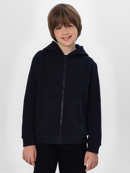 Стильная спортивная толстовка на молнии для мальчиков. Выполнена из теплого и нежного трикотажного футера с подчесом. Прямой свободный силуэт дополнен уютным капюшоном и удобным карманом-кенгуру. Рукава длинные, линия плеча немного спущена. Рекомендуем для прохладной погоды!