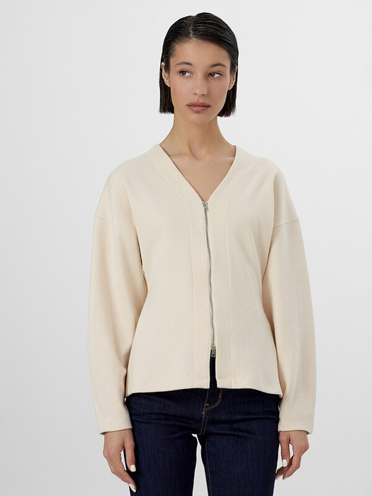 Центральная застежка на молнию делает жакет удобным в ежедневном использовании и универсальным для разных образов.