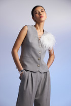 Жилет легко комбинируется с платьями, брюками и джинсами, дополняя как повседневные, так и нарядные образы. С ним вы сможете подчеркнуть стиль и чувствовать себя комфортно в любой обстановке — от офиса до вечерней прогулки.
