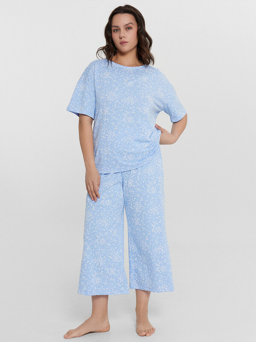 Женская пижама Mark Formelle станет идеальным дополнением вашего домашнего гардероба. Свободная футболка с круглой горловиной и короткими рукавами со спущенной линией плеча обеспечивает максимальный комфорт и свободу движений. Бриджи свободного кроя с эластичным поясом идеально сидят на талии, не стесняя движений и обеспечивая удобство на протяжении всего дня. Изделие выполнено из нежной кулирки - мягкого и приятного к телу материала, который отличается дышащими свойствами и гипоаллергенностью. Подарите себе или своим близким эту чудесную пижаму и наслаждайтесь уютными домашними вечерами.