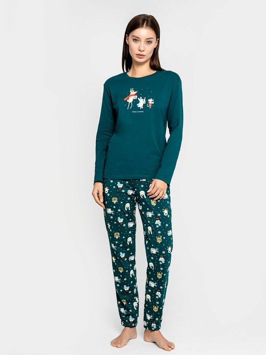 Горловина круглой формы с притачной обтачкой из основного полотна. Рукава длинные втачные. Перед и спинка цельнокроеные. Низ джемпера и рукавов обработан швом в подгибку. Брюки длинные, немного заужены к низу. Пояс цельнокроенный с эластичной тесьмой внутри. Низ брюк застрочен с эластичной тесьмой внутри.