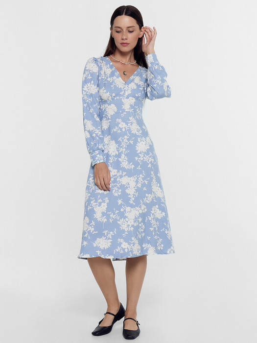 Совместные покупки Тюмень Женская одежда Платья — Mark FormelleПЛАТЬЕ ЖЕНСКОЕ 152512 152512 цветочки на пыльно -голубом 1050