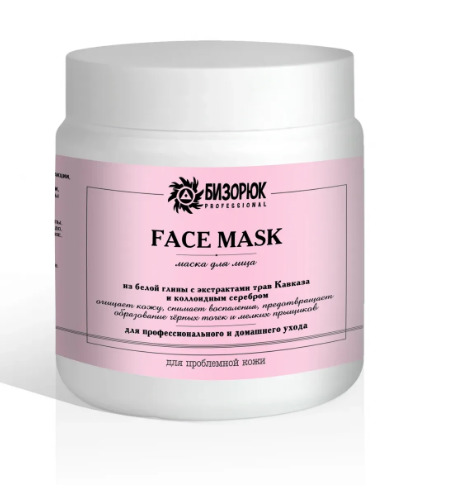 Маска для лица из белой глины, пластик, 500 мл, "Бизорюк professional"