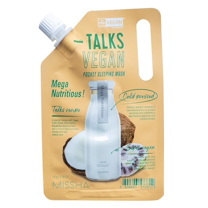 Маска ночная для тусклой кожи лица MISSHA Talks Vegan Squeeze Pocket Sleeping Mask Mega Nutritious (нони, кокос)10g.
