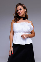 Кроп-топ – из полотна «рибана» без рукавов, с горловиной овальной формы, обработанной окантовкой из основного материала и притачным поясом по низу. В центре пояса настрочен декоративный элемент.