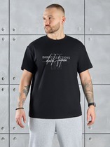 Мужская футболка из кулирки с лайкрой. Рукава отсутствуют, V-образный вырез, отделка горловины другой тканью, принт в виде маленькой надписи. Четыре расцветки — белая, изумрудная, индиго и серый меланж. Размеры от 48 до 54. Есть розница.