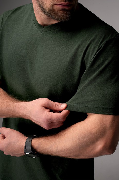 Футболка с V-образным вырезом — неотъемлемый элемент в конструкторе твоего стиля! Классическая однотонная пригодится на каждый день.