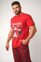 Мужская пижама с ярким новогодним принтом создаст атмосферу тепла и домашнего уюта. Хлопковая трикотажная ткань приятна к телу, а свободный крой делает комплект с брюками удобным для сна отдыха дома.
