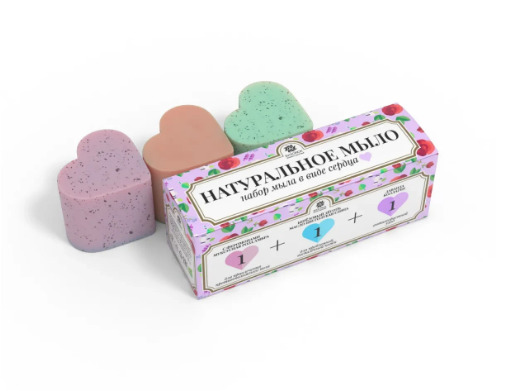 Совместные покупки Тюмень Хозтовары и личная гигиена Мыло, жидкое мыло — Набор из трёх мыл в виде сердца фиолетовый, 135 г, "Бизорюк"