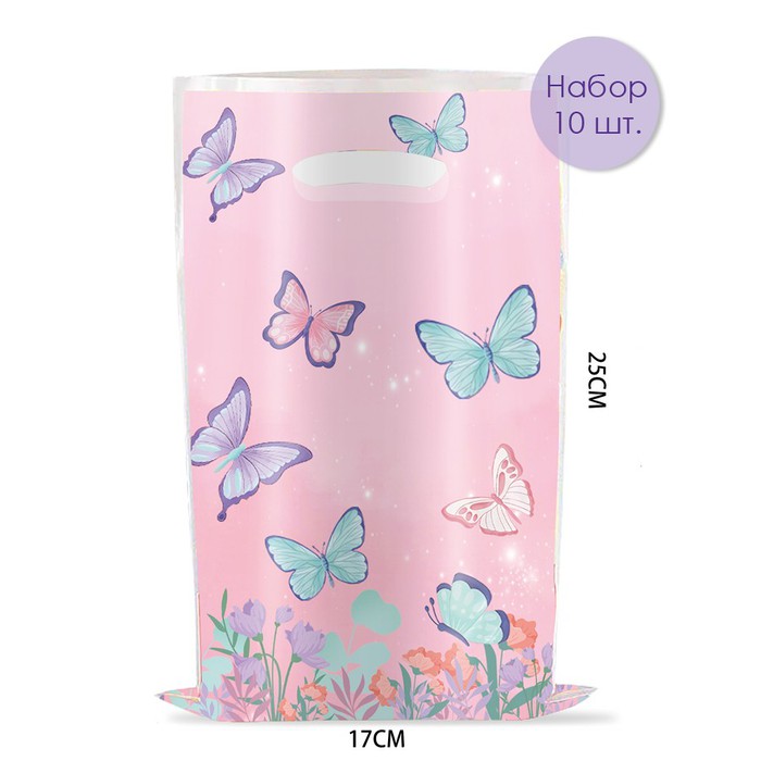 — Набор пакетов подарочных 10 штук 25*17 см. Бабочки
