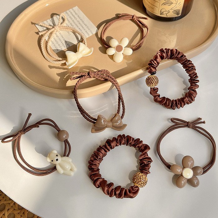 Совместные покупки Тюмень Косметика и парфюмерия Прочий макияж — Набор резинок для волос с декором 7 шт. Бежево-Коричневые