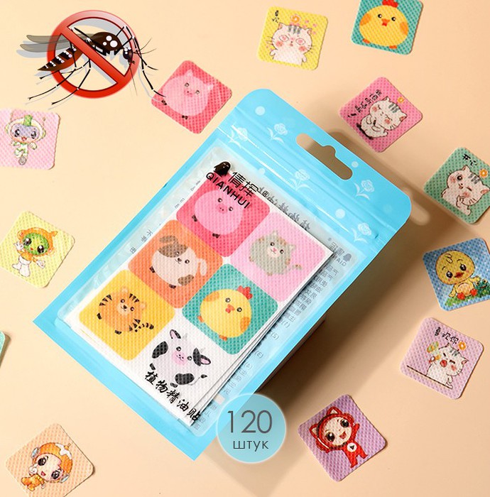 Наклейки от комаров и мошек с рисунками, набор 120 шт.