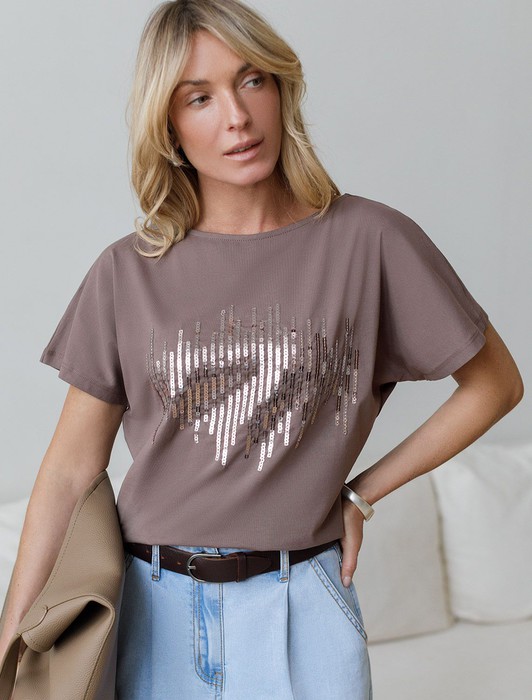 Нарядная футболка с принтом пайетками