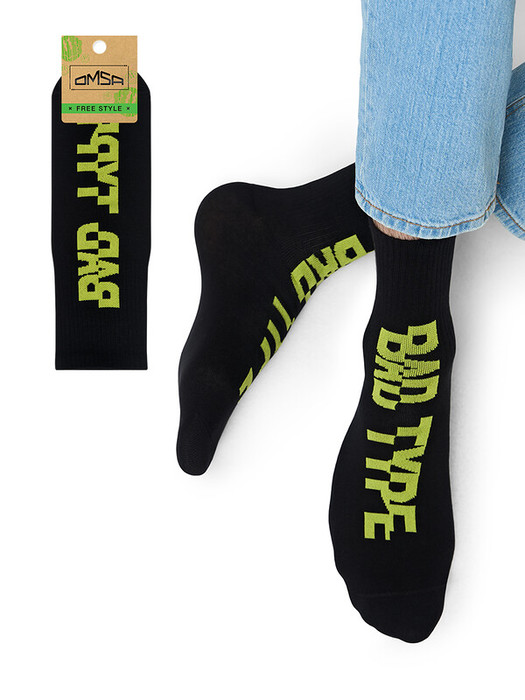 Носки OMSA FREE STYLE 600 c высокой резинкой и сленговыми надписями. В составе - высококачественный хлопок, который позволяет коже дышать, отлично впитывает влагу и подходит даже для самой чувствительной кожи. Добавление эластана обеспечивает превосходное облегание. Удобная широкая резинка и кеттельный (плоский) шов на мыске создают дополнительный комфорт.
