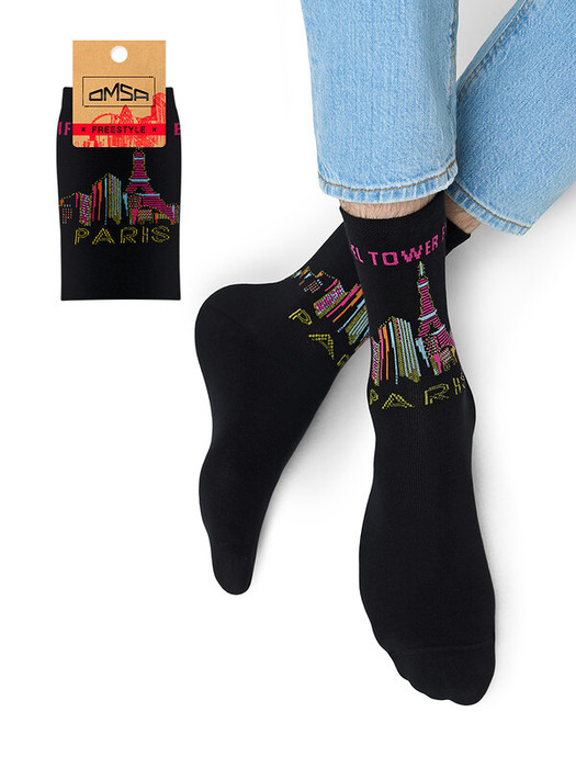 Носки унисекс OMSA с модным рисунком в виде знаковых городов мира. В составе - высококачественный хлопок, который позволяет коже дышать, отлично впитывает влагу и подходит даже для самой чувствительной кожи, и эластан, который обеспечивает превосходное облегание. Удобная широкая резинка и кеттельный (плоский) шов на мыске создают дополнительный комфорт.
