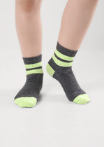 Плюшевые детские носочки в полоску, на носке вывязаны пингвины