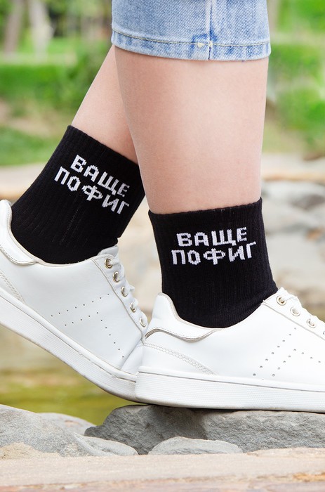 Стильные женские носки с прикольной надписью – идеальный способ разнообразить образ и добавить в него крутую изюминку! Черные носки для женщин выполнены из нежного хлопка, подойдут для подростков. Классный рисунок поднимет настроение и разбавит серые будни, а мягкая пряжа подарит уют в течение дня.