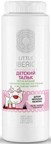 Содержит органическое масло лаванды и экстракт тимьяна. Детский тальк после купания хорошо впитывает влагу и предотвращает появление опрелостей и покраснений на нежной коже малыша.