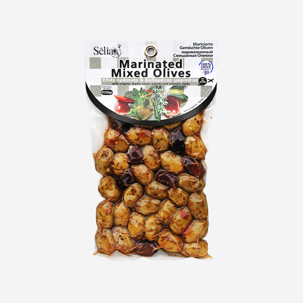 Оливки "Selia", вакуумная упаковка 250 г, в ассортименте