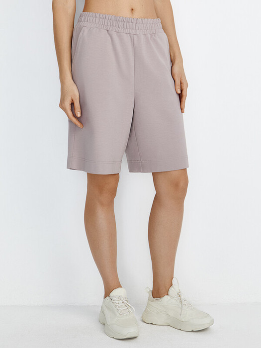 Женские свободные шорты средней длины с боковыми карманами и поясом на резинке.