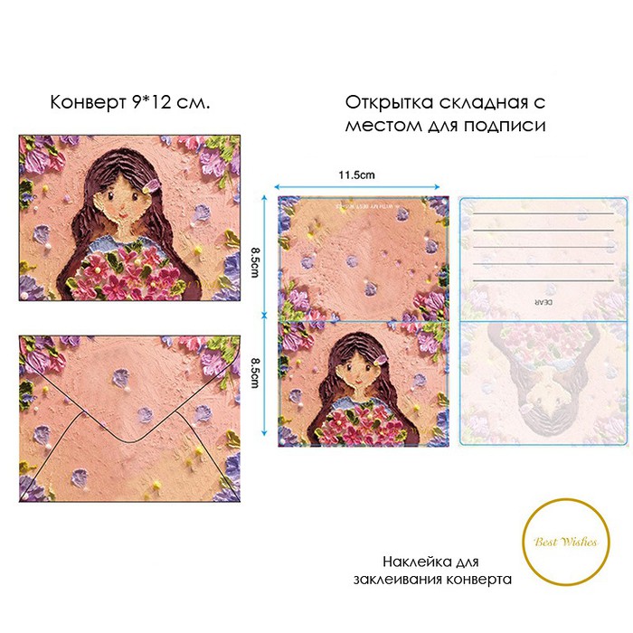 Совместные покупки Тюмень Косметика и парфюмерия Прочий макияж — Открытка + конверт с 3D-рисунком ДЕВОЧКА С БУКЕТОМ