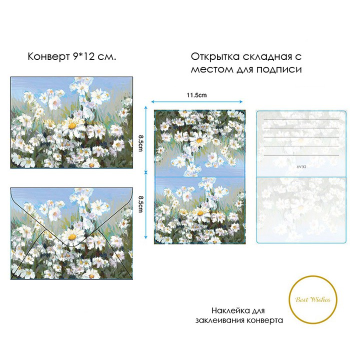Открытка + конверт с 3D-рисунком ПОЛЕ РОМАШЕК