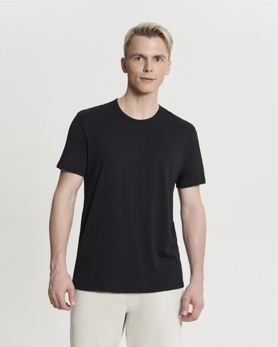 Классическая мужская футболка прямого силуэта. Горловина окантована рибаной
