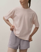 Футболка свободного силуэта. Спущенное плечо. Горловина из двух деталей, из рибаны.