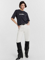 Футболка свободного силуэта. Спущенное плечо. Горловина из двух деталей, из рибаны.