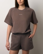 Футболка полупрелигающего силуэта, втачной рукав, горловина окантована рибаной