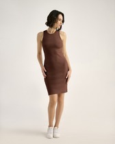 Платье из кашкорсе, облегающего силуэта, с окантовкой пройм и горловины из основной ткани