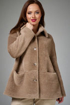 Укороченное пальто из мягкого коротковорсового меха на трикотажной основе, слегка расширенного силуэта, застежкой на пуговицы и отложным воротником со стойкой. Рукав длинный, линия плеча спущена. На переде карманы в горизонтальных швах. Изделие на подкладке.