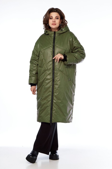 Пальто женское утепленное с центральной застежкой "молния", длиной до середины икры. Спинка выстегана фигурной стежкой. Перед с боковыми прорезными карманами "с листочкой" и фигурной стежкой. Рукав втачной одношовный со спущенной линией плеча. По низу рукава внутри трикотажный довяз. По рукаву так же фигурная стежка. Воротник-капюшон с центральной и боковыми частями и кулисой. В качестве утеплителя синтепон 200. Температурный режим до -10 градусов. Внешний вид фурнитуры может отличатсья от заявленного на фото. По низу изделия нет резинки и фиксаторов.