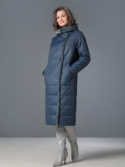 Стильное длинное пальто прямого силуэта с ассиметричной  застежкой на кнопки. Такое демисезонное пальто подходит для женщин и девушек любого возраста.  Воротник - стойка, переходящая в капюшон. Низ втачного рукава оформлен трикотажной манжетой. Удобно расположенные прорезные карманы  застегиваются на молнию. Край борта и опушка капюшона  выполнены из мягкого эко-меха, который хорошо стирается на рекомендованном режиме и не меняет свой внешний вид после высыхания. Плащевая ткань имеет водоотталкивающую пропитку,  которая выдержит небольшой осенний дождь или снег. Хорошо зарекомендовавший себя утеплитель Холлофайбер плотностью 150 гр/м защитит от холода и  ветра. Подкладка в изделии - в мелкую полоску. Выбирайте понравившийся цвет, подбирайте аксессуары, и Ваша осень будет стильной и комфортной!