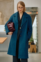 Пальто женское демисезонное, двубортное, прямого силуэта длинное. Застежка на петли и пуговицы. Перед с наклвдными карманами. Рукава комбинированные с ластовицей, длинные двухшовные с притачной нижней частью. Воротник и лацкана отложные. Пальто из пальтовой ткани, на подкладке. По воротнику, лацканам, бортам, среднему шву спинки, краю кармана широкая отделочная строчка
