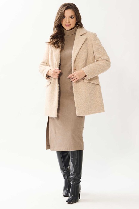 Пальто женское полуприлегающего силуэта. Перед с нагрудными вытачками и прорезными карманами. Спинка со средним швом, заканчивающимся шлицей. Воротник пиджачного типа. Рукава втачные, 2х шовные. Пальто на подкладке.