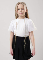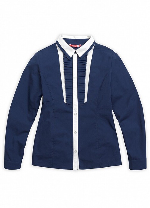 Блузка для девочек. Классический полуприлегающий силуэт с рельефами по переду и спинке. За счёт сочетания контрастных цветов тканей, а также мелкой складки с области груди, модель смотрится оригинально и ярко, при этом сохраняет строгость и гармоничность. Коллекция - школа.