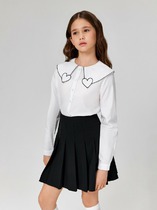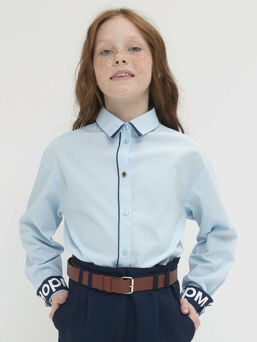 Рубашка для девочки из практичной ткани с современными деталями. Планка, концы воротника и внутренние манжеты выполнены из ткани контрастного цвета. Это разбавляет официальный стиль и позволяет не стирать белую рубашку каждый день.