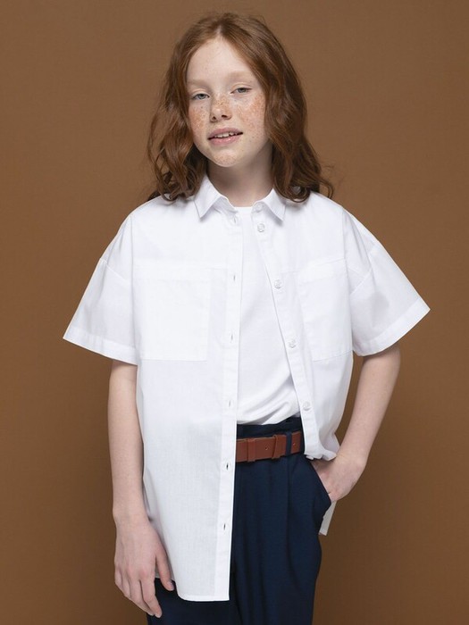 Эта рубашка в свободном прямом силуэте позволит быть собой и активничать не только на уроках, но и на переменах. Широкие накладные карманы не только стильный, но и функциональный элемент блузки. Подходит для любой фигуры.